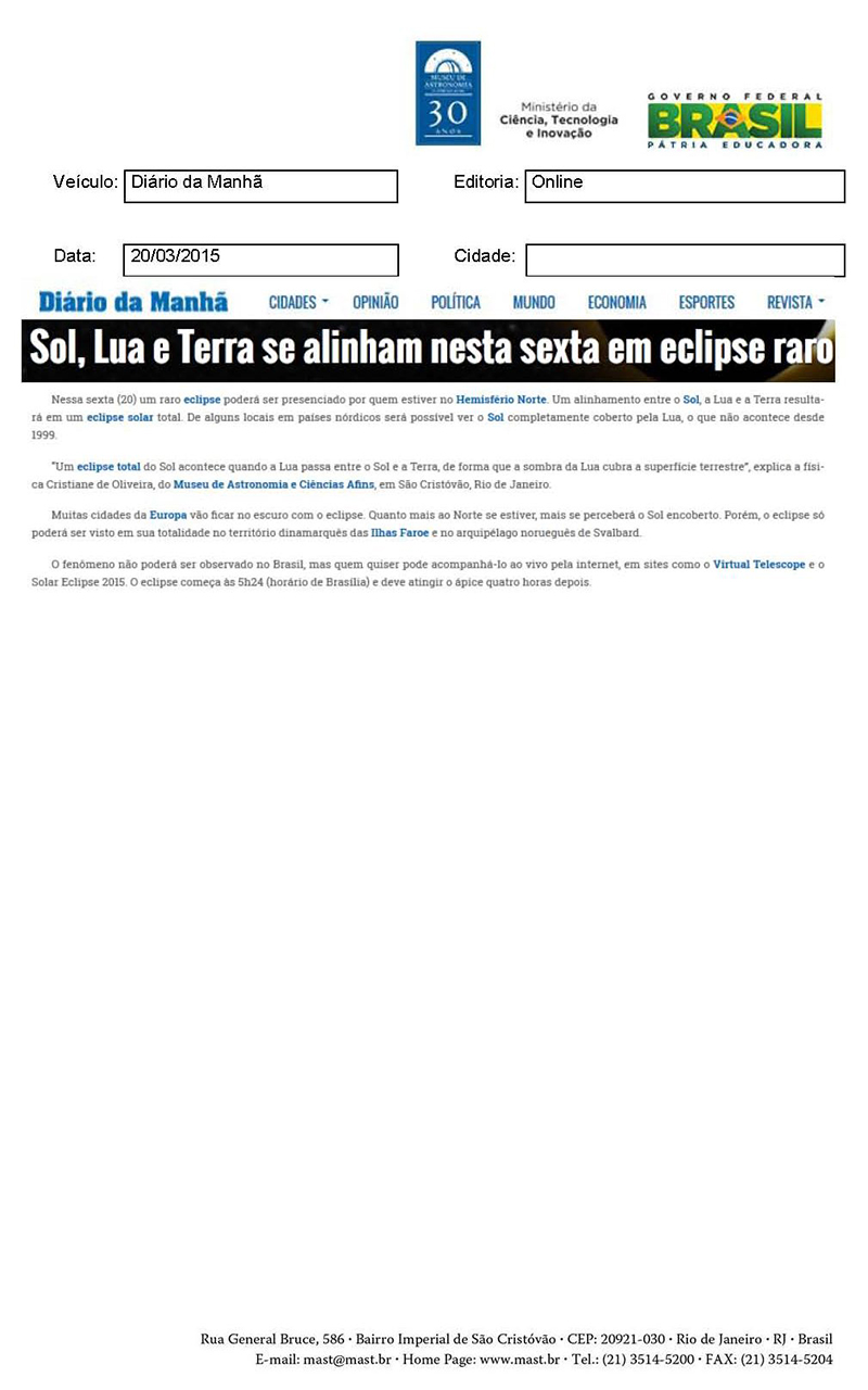 Diário da Manhã | Sol, Lua e Terra se alinham nesta sexta em eclipse raro
