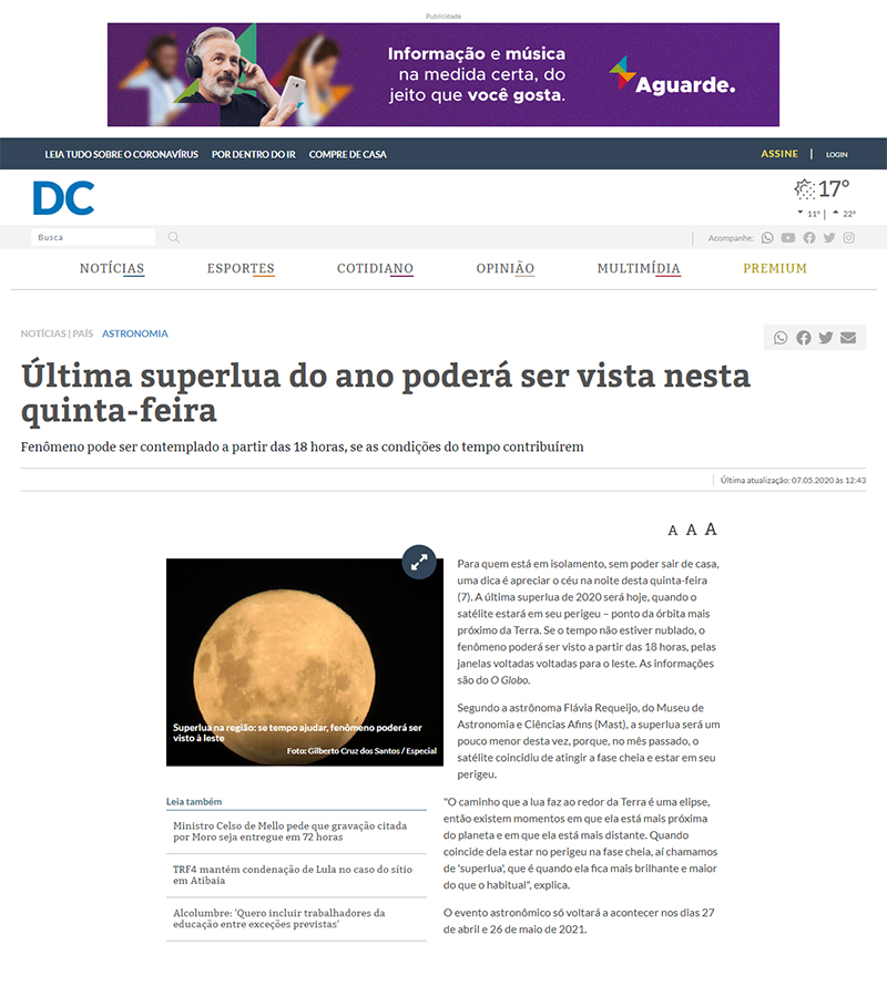 Diário de Canoas online (Canoas-RS) | MAST na reportagem sobre a última Superlua de 2020
