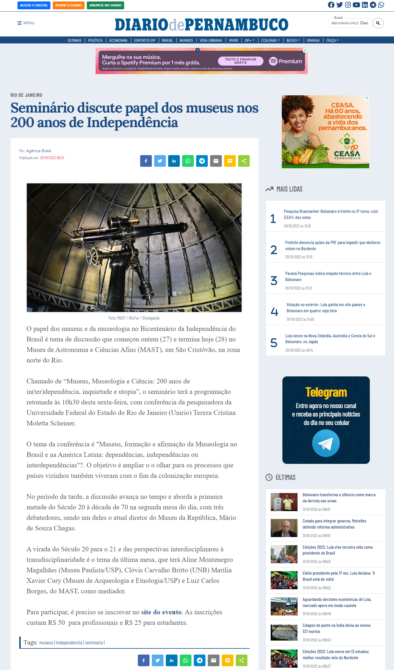 Diário de Pernambuco - Seminário discute papel dos museus nos 200 anos de Independência