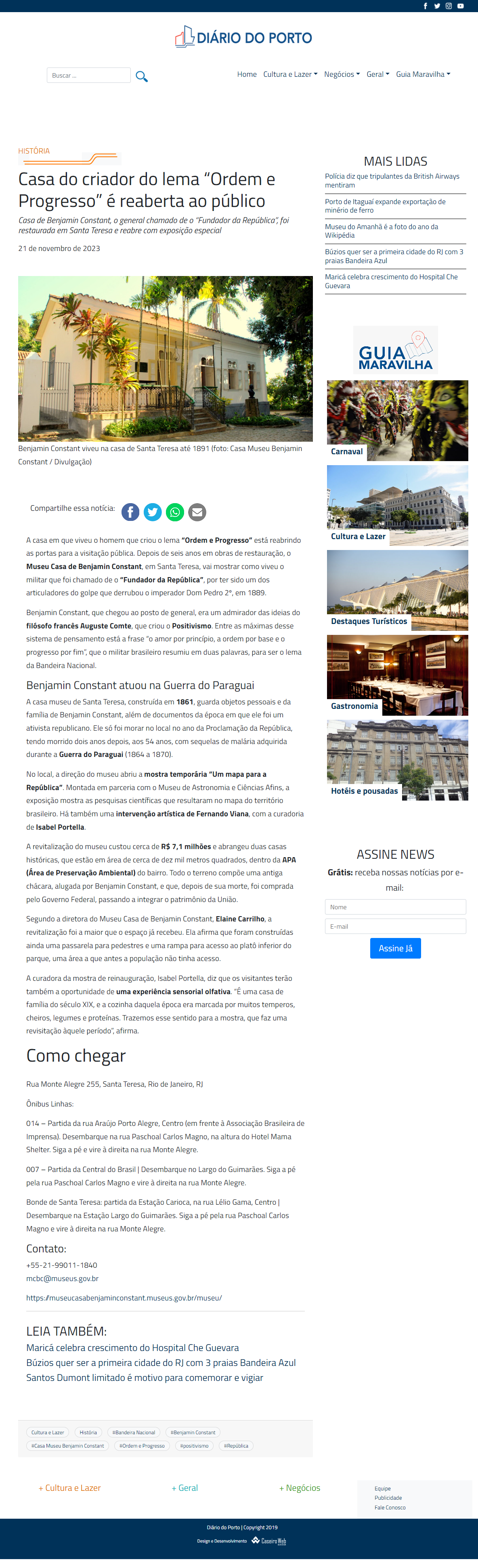 Diário do Porto - Casa do criador do lema “Ordem e Progresso” é reaberta ao público
