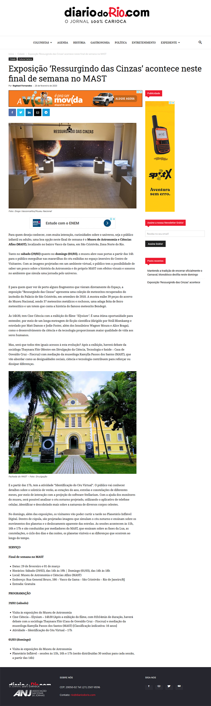 Diário do Rio.com | Exposição ‘Ressurgindo das Cinzas’ acontece neste final de semana no MAST