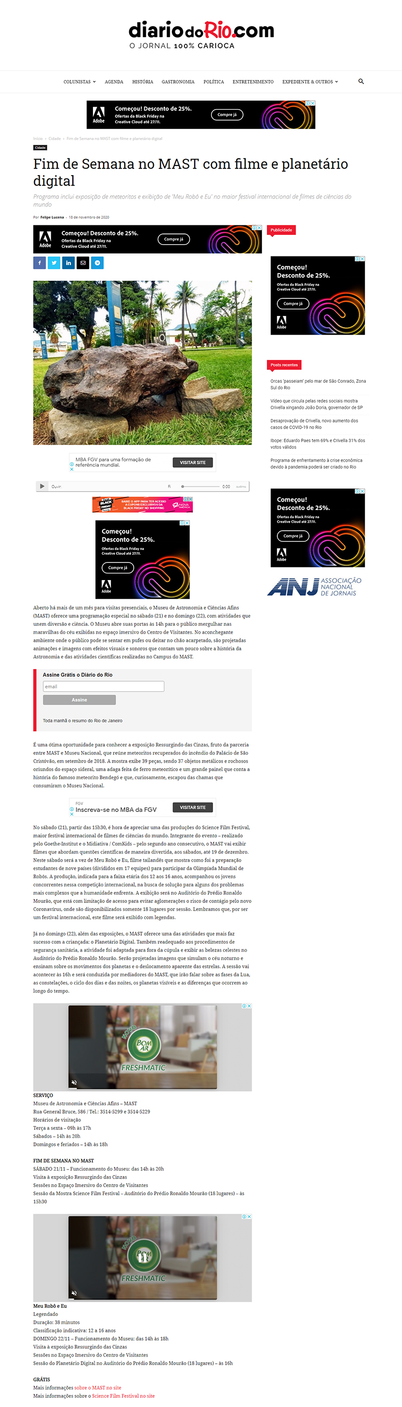 Diário do Rio.Com | Fim de Semana no MAST com filme e planetário digital