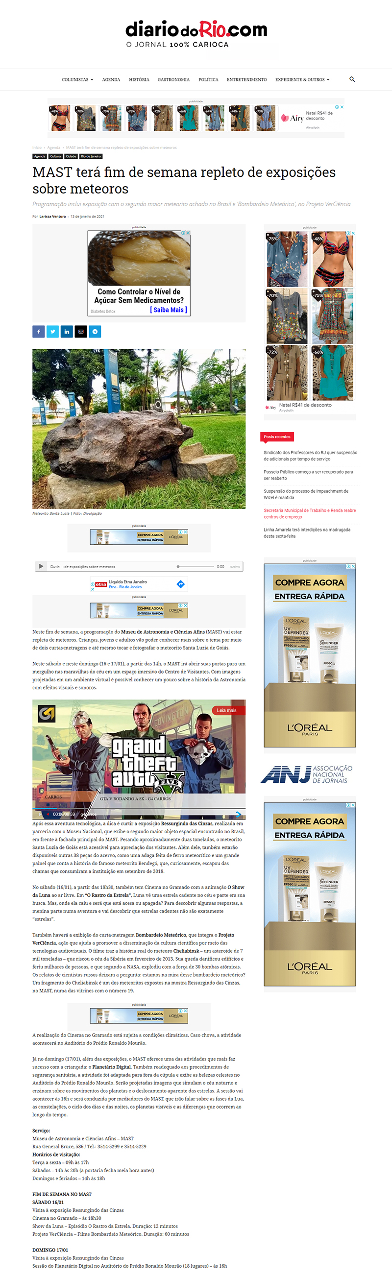 Diário do Rio.com | MAST terá fim de semana repleto de exposições sobre meteoros