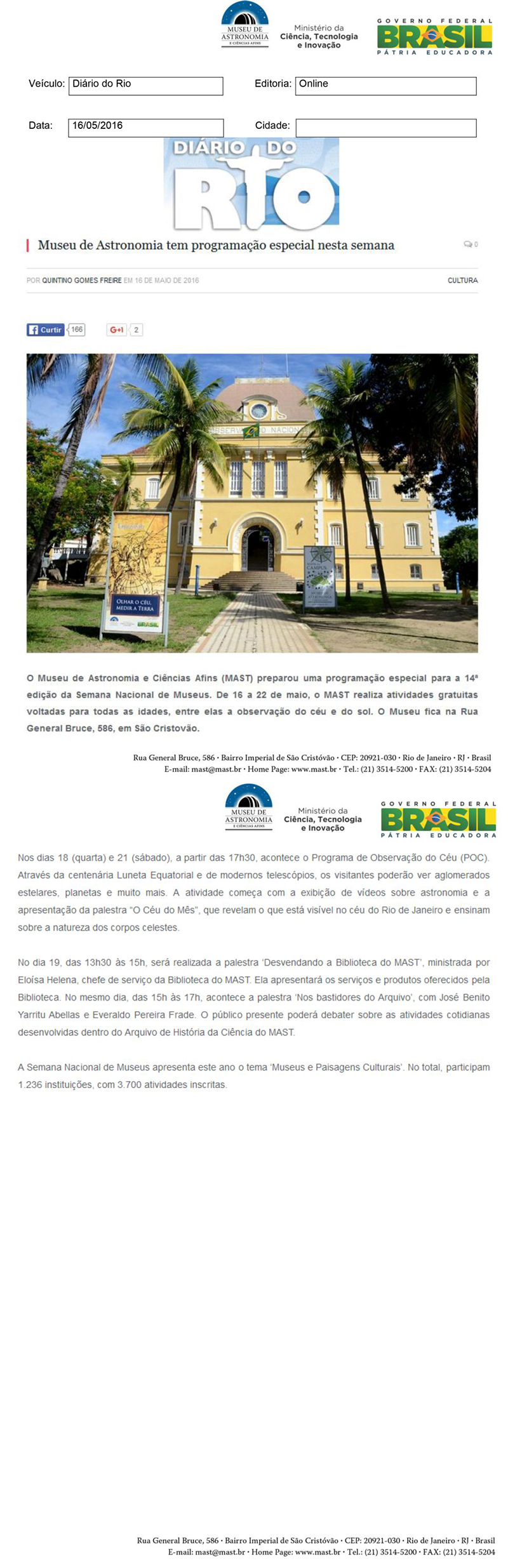 Diário do Rio | Museu de Astronomia tem programação especial nesta semana