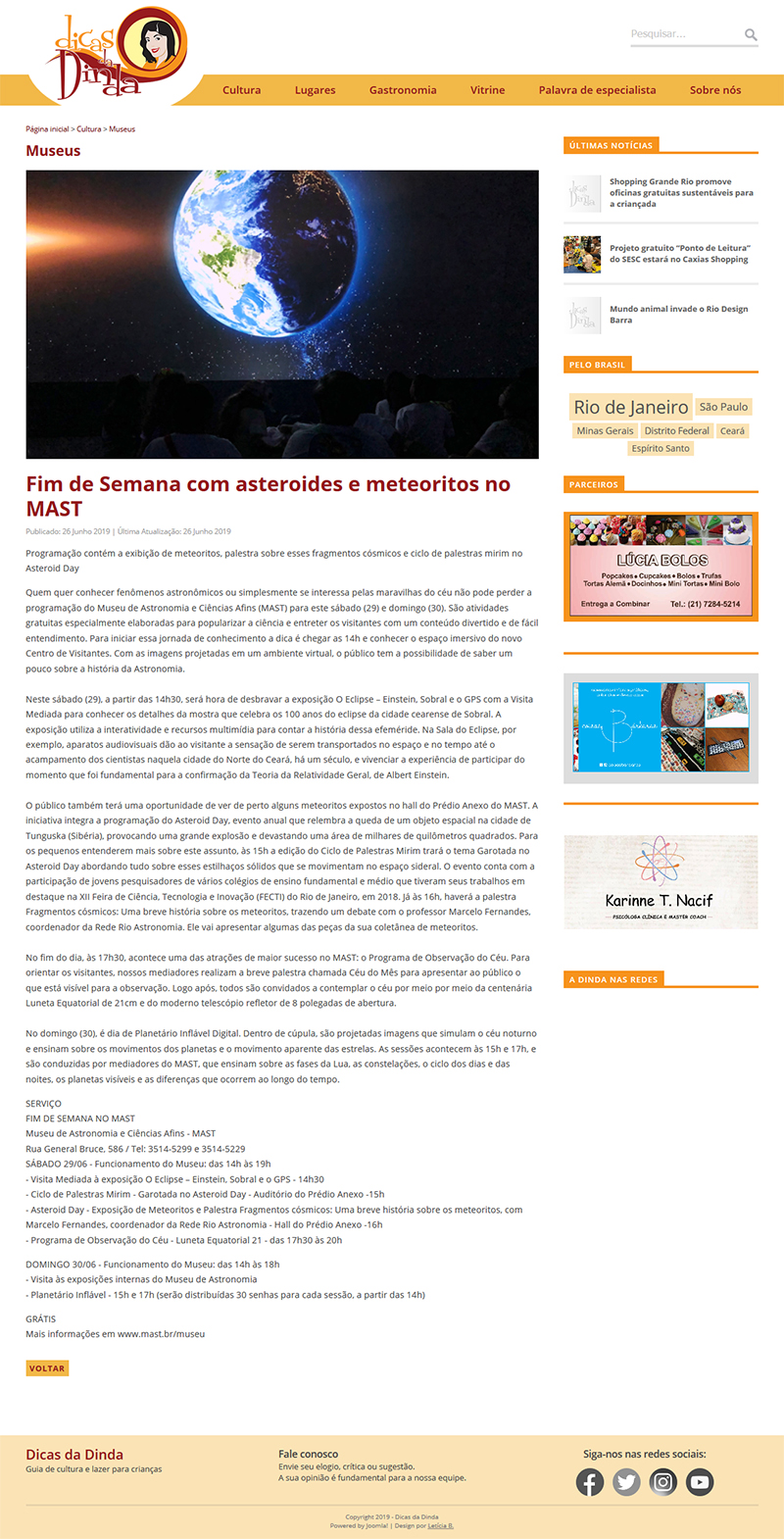 Dicas da Dinda | Fim de Semana no MAST / Asteroid Day