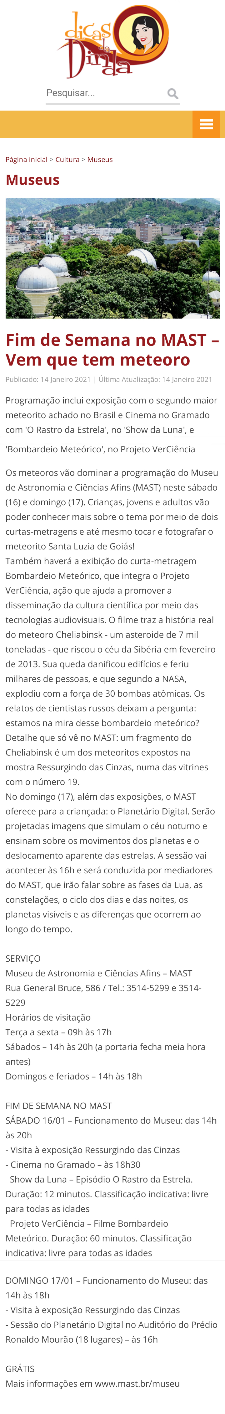 Dicas da Dinda | Fim de Semana no MAST - Vem que tem meteoro
