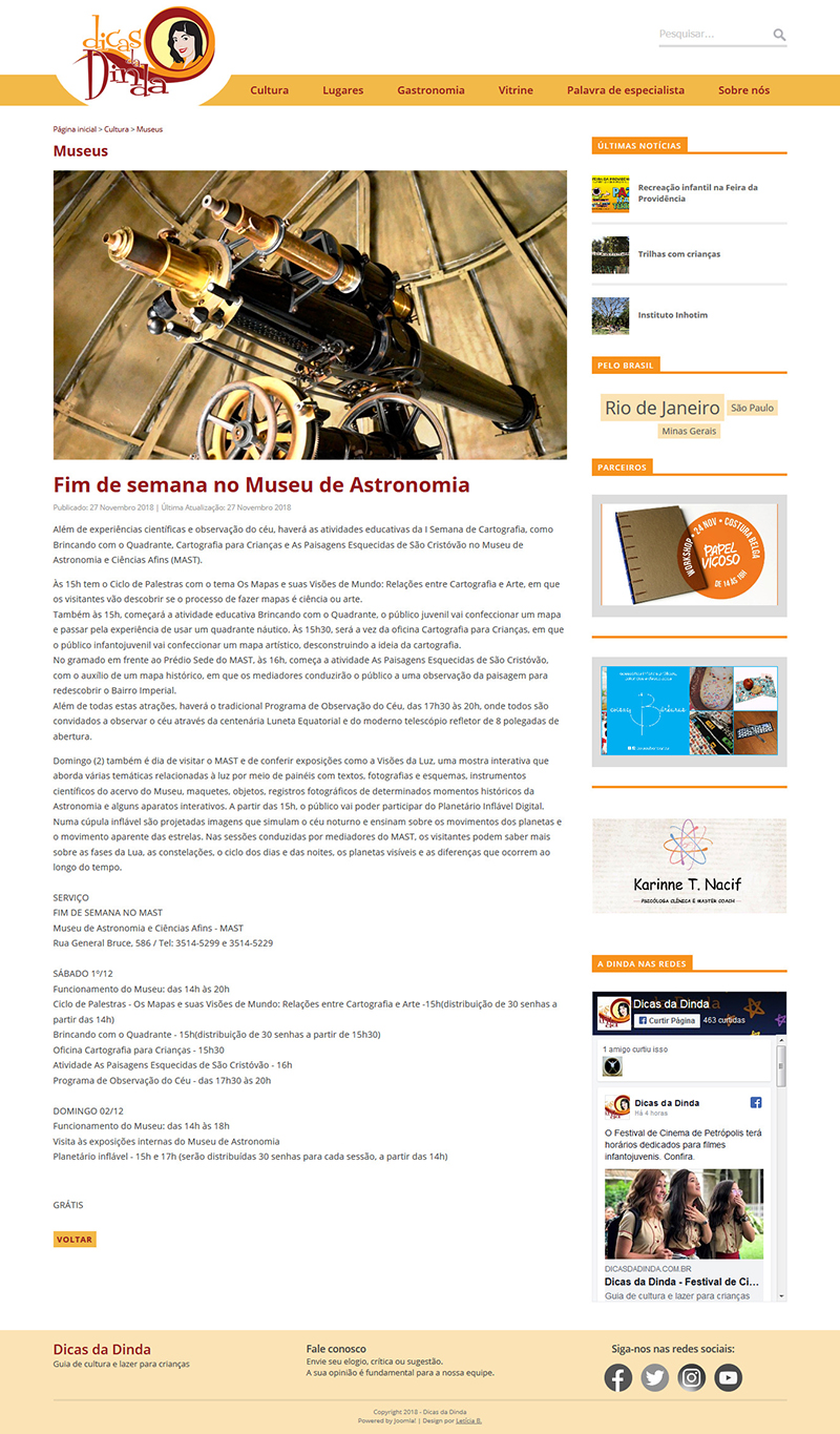 Dicas da Dinda | Fim de semana no Museu de Astronomia