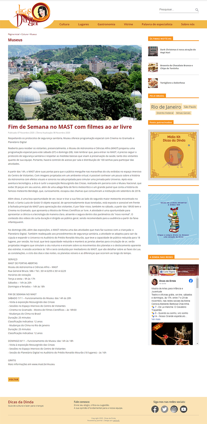 Dicas da Dinda - MAST de Portas Abertas | Fim de Semana com Sol e vídeos ao ar livre