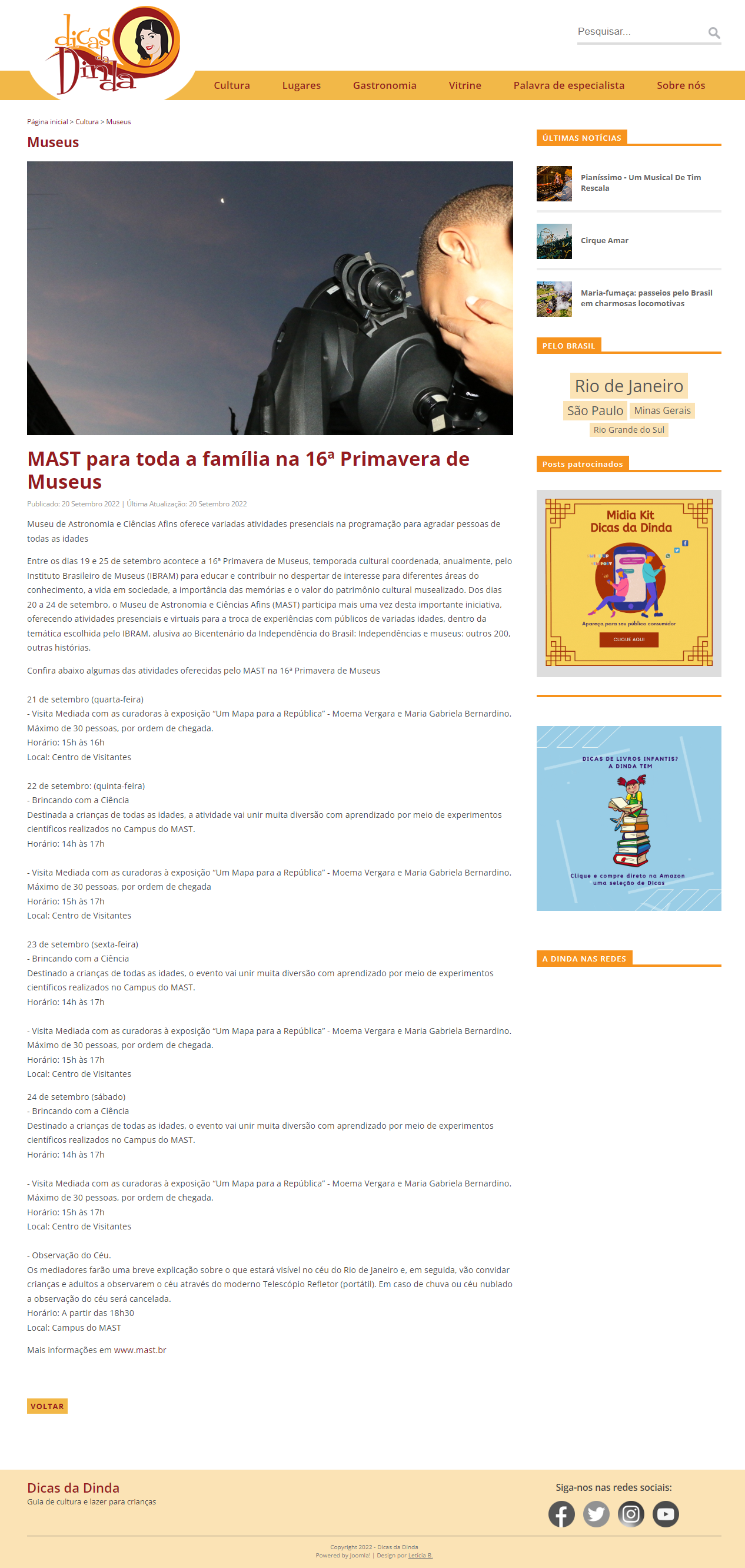Dicas da Dinda - MAST na 16ª Primavera de Museus