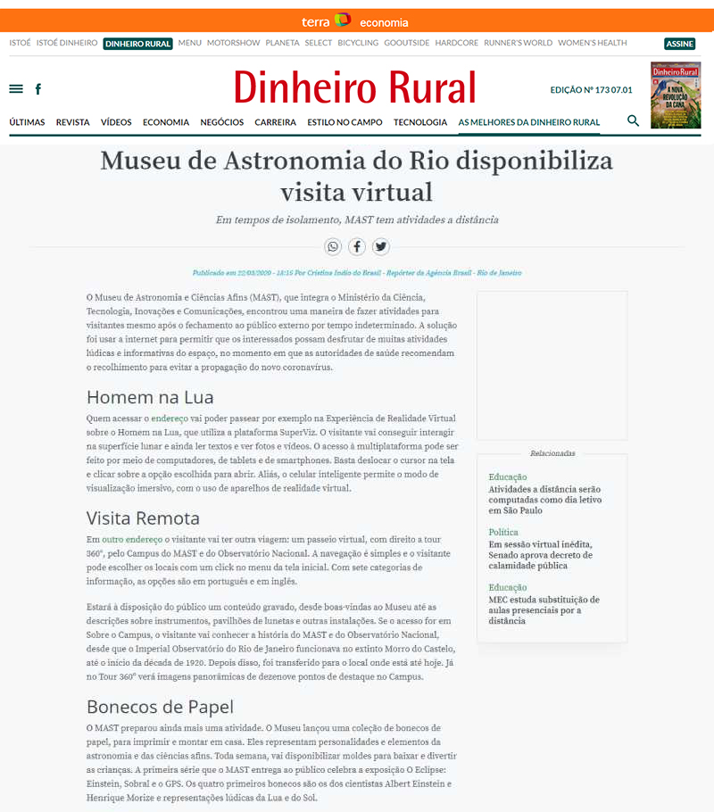 Dinheiro Rural - Portal Terra | MAST disponibiliza visita virtual
