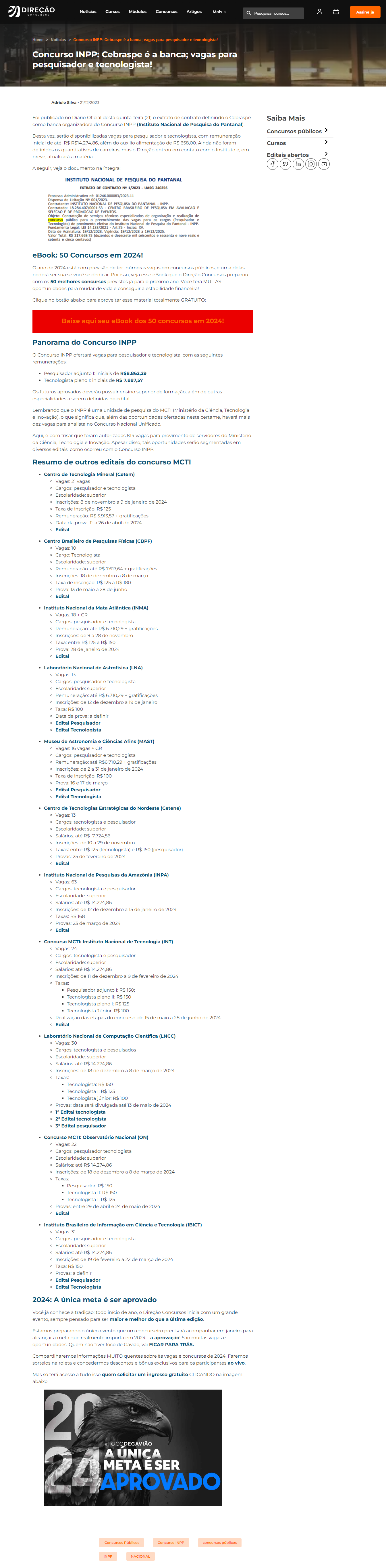 Direção Concursos - Concurso INPP: Cobraspe é a banca; vagas para pesquisador e tecnologista!