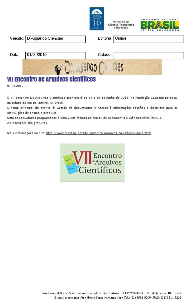 Divulgando Ciências | VIII Encontro de Arquivos Científicos