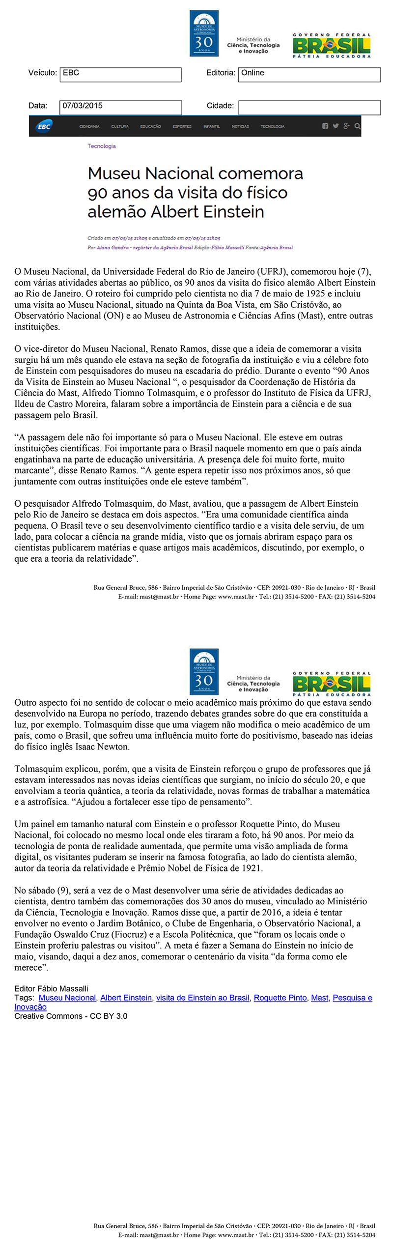 EBC | Museu Nacional comemora 90 anos da visita do físico alemão Albert Einstein