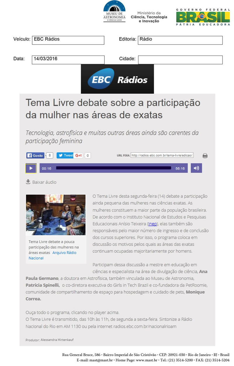 EBC Rádios | Tema Livre debate sobre participação da mulher nas áreas de exatas