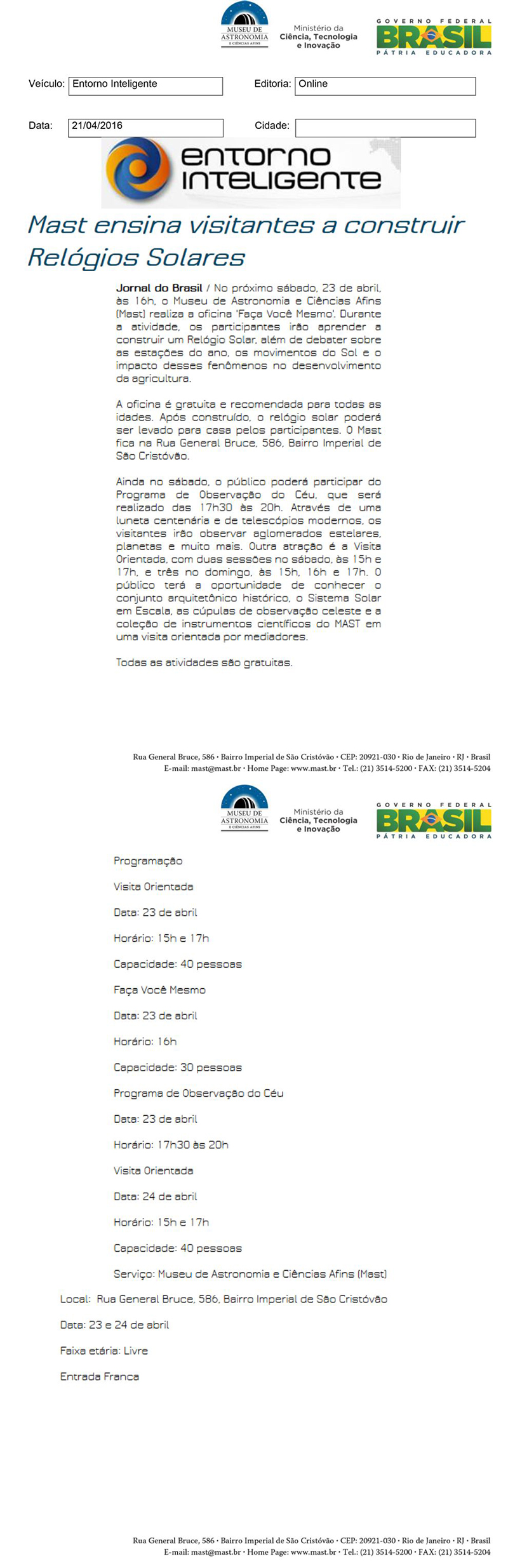 Entorno Inteligente | MAST ensina visitantes a construir Relógios Solares