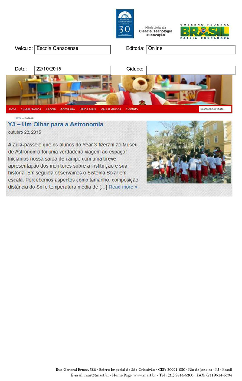 Escola Canadense | Y3 - Um Olhar para a Astronomia
