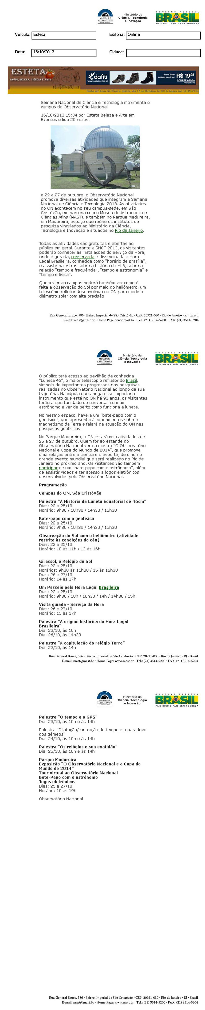 Esteta | Semana Nacional de Ciência e tecnologia movimenta o campus do Observatório Nacional