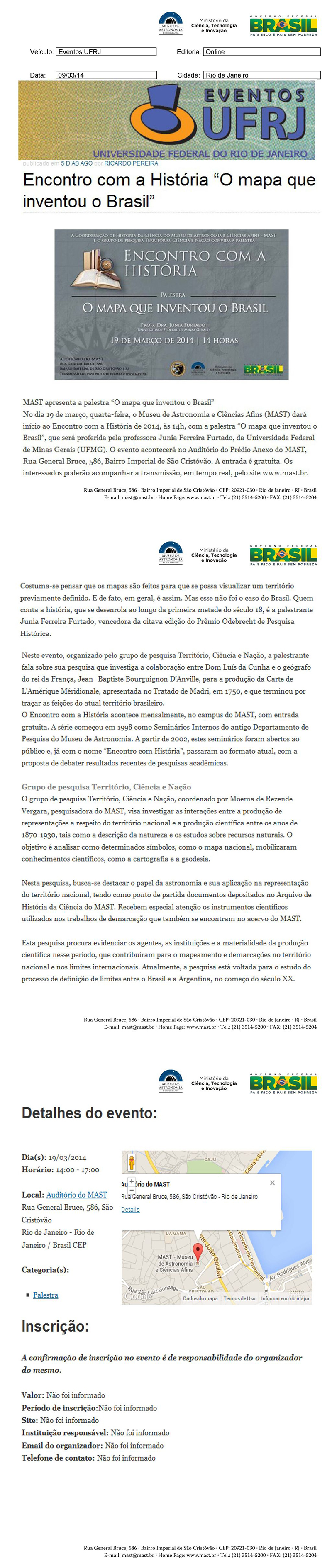 Eventos UFRJ | Encontro com a História "O mapa que inventou o Brasil"