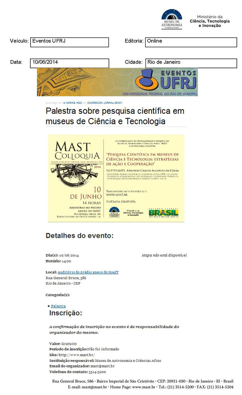 Eventos UFRJ | Palestra sobre pesquisa científica em museus de Ciência e Tecnologia