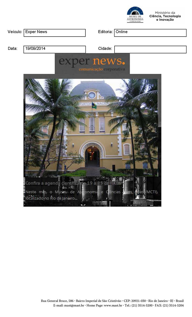 Exper News | Confira a agenda científica de 19 a 25 de setembro