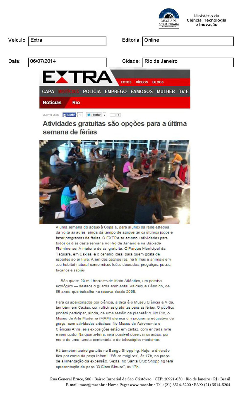Extra | Atividades gratuitas são opções para a última semana de férias