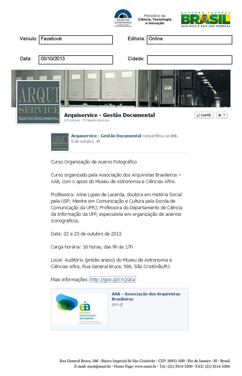 Facebook | Curso Organização de Acervo Fotográfico