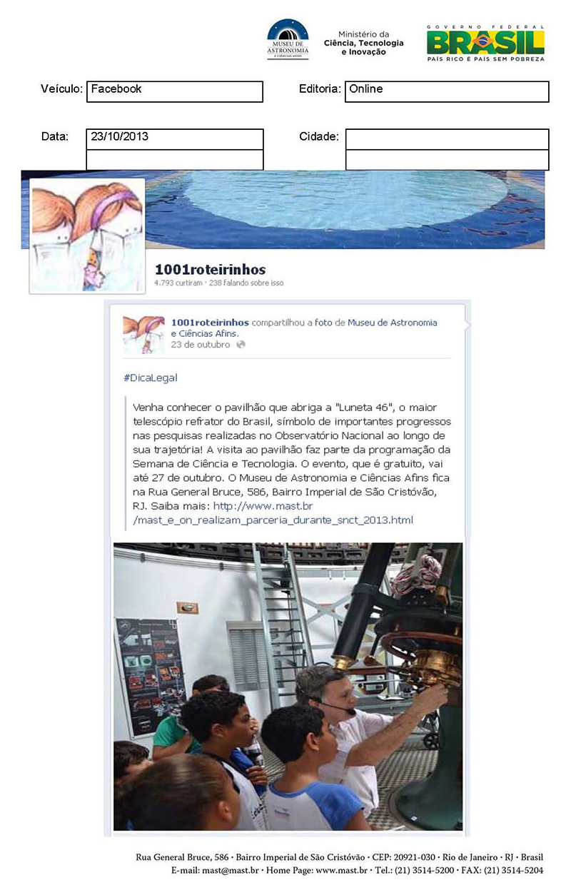 Facebook | Venha conhecer o pavilhão que abriga a "Luneta 46"