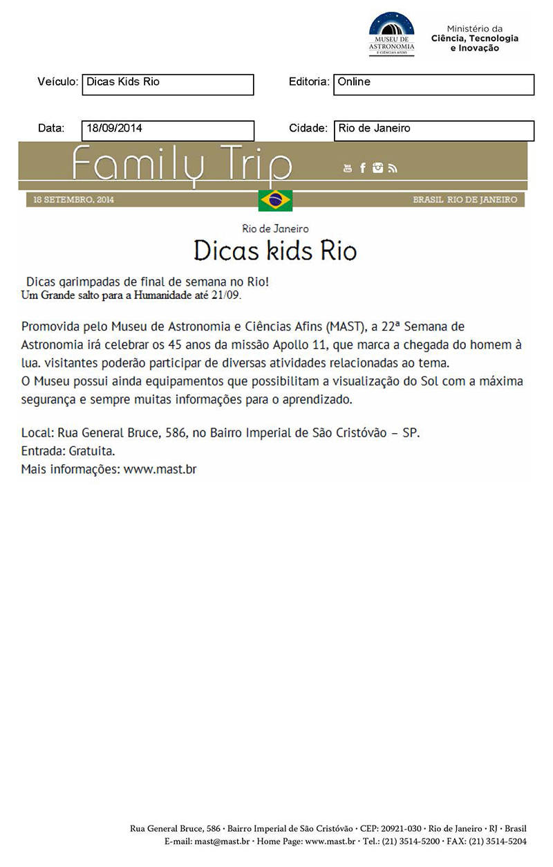 Family Trip | Dicas kids Rio