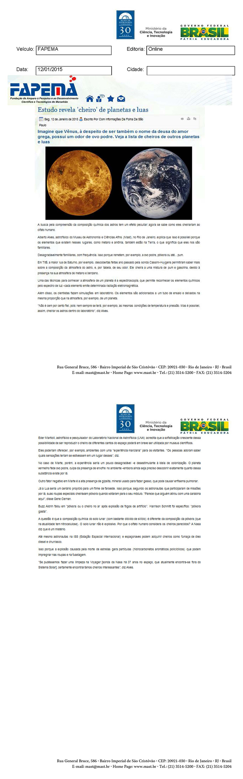 FAPEMA | Estudo revela 'cheiro' de planetas e luas