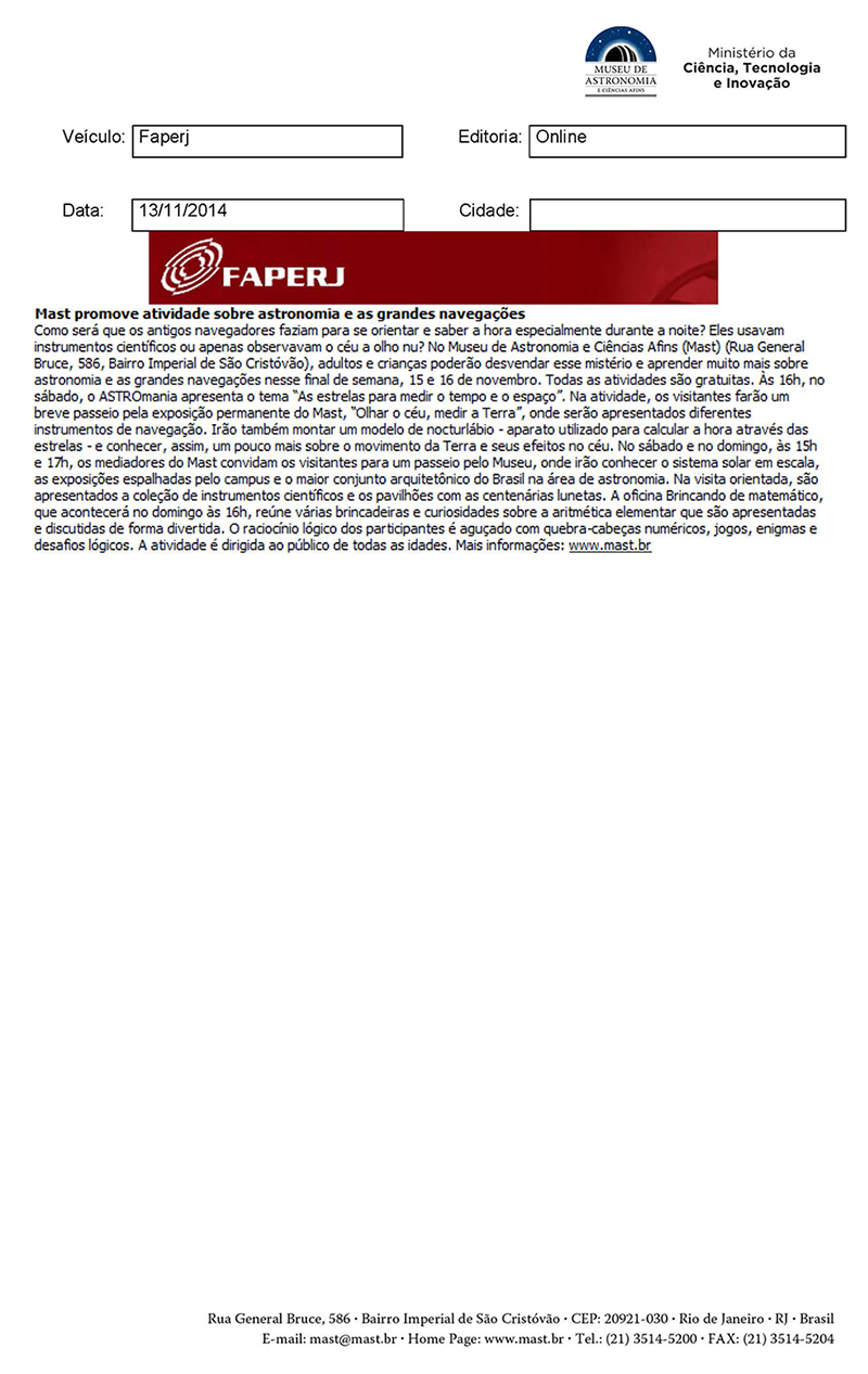 FAPERJ | MAST promove atividade sobre astronomia e as grandes navegações
