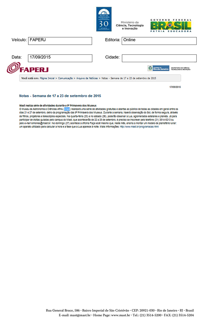 FAPERJ | MAST realiza série de atividades durante a 3ª Primavera de Museus