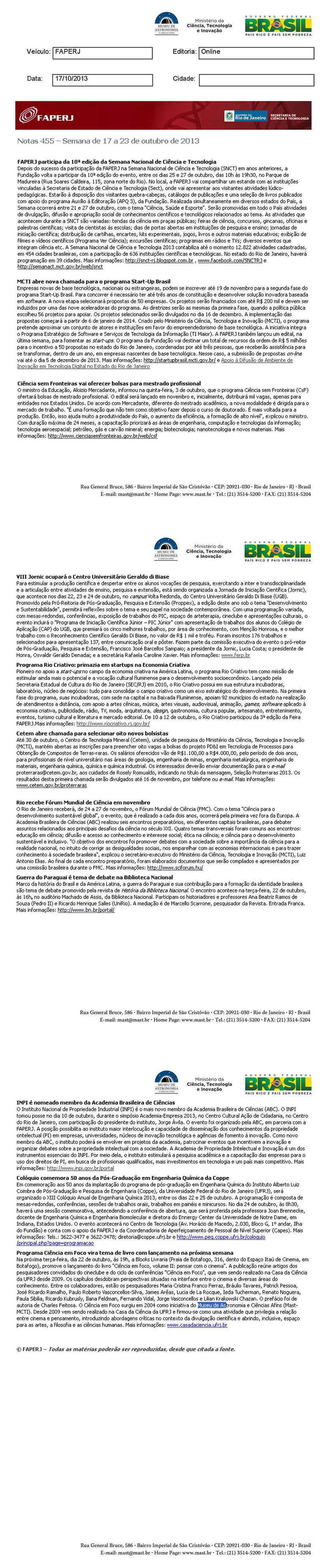 FAPERJ | Semana de 17 a 23 de outubro de 2013