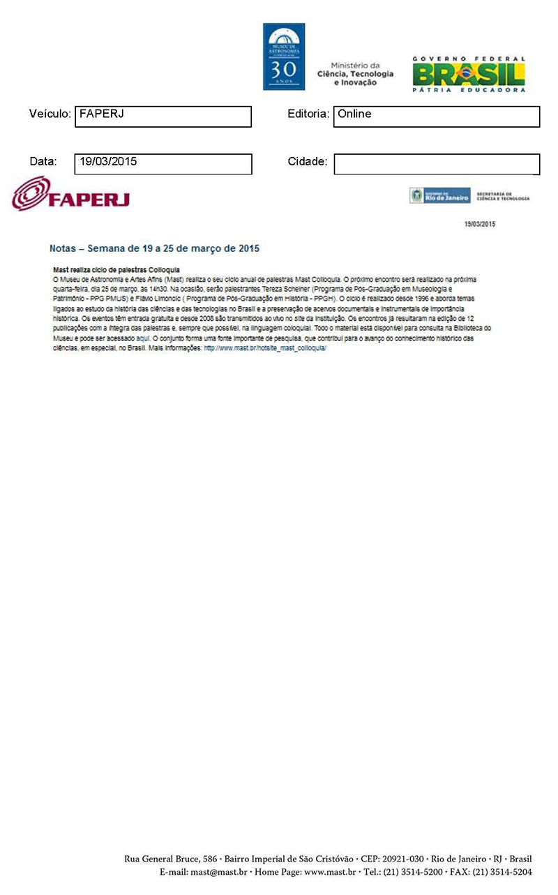 FAPERJ | Semana de 19 a 25 de março de 2015