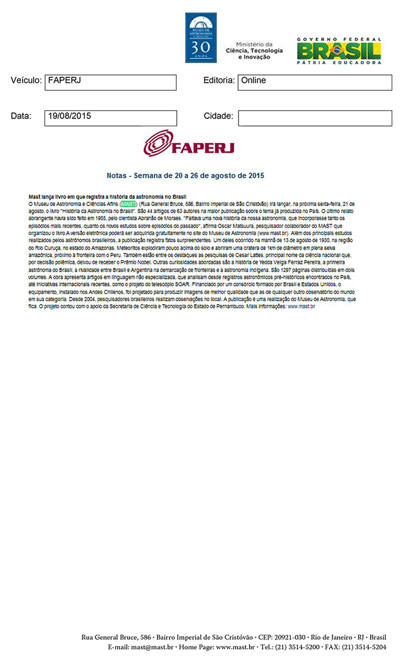 FAPERJ | Semana de 20 a 26 de agosto de 2015
