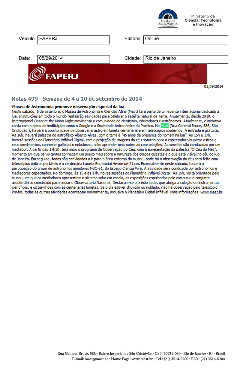 FAPERJ | Semana de 4 a 10 de setembro de 2014