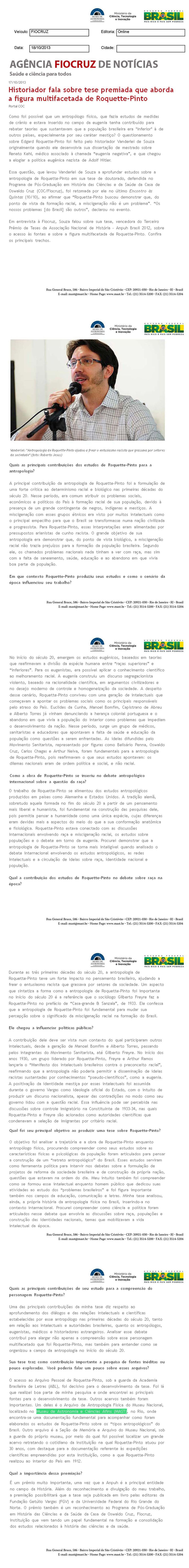 Fiocruz | Historiador fala sobre tese premiada que aborda a figura multifacetada de Roquette-Pinto