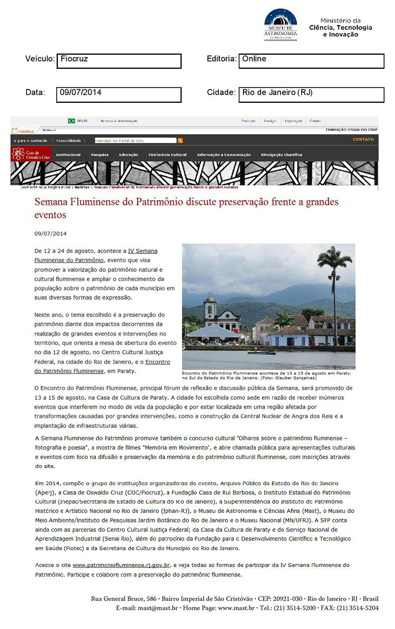 Fiocruz | Semana Fluminense do Patrimônio discute preservação frente a grandes eventos