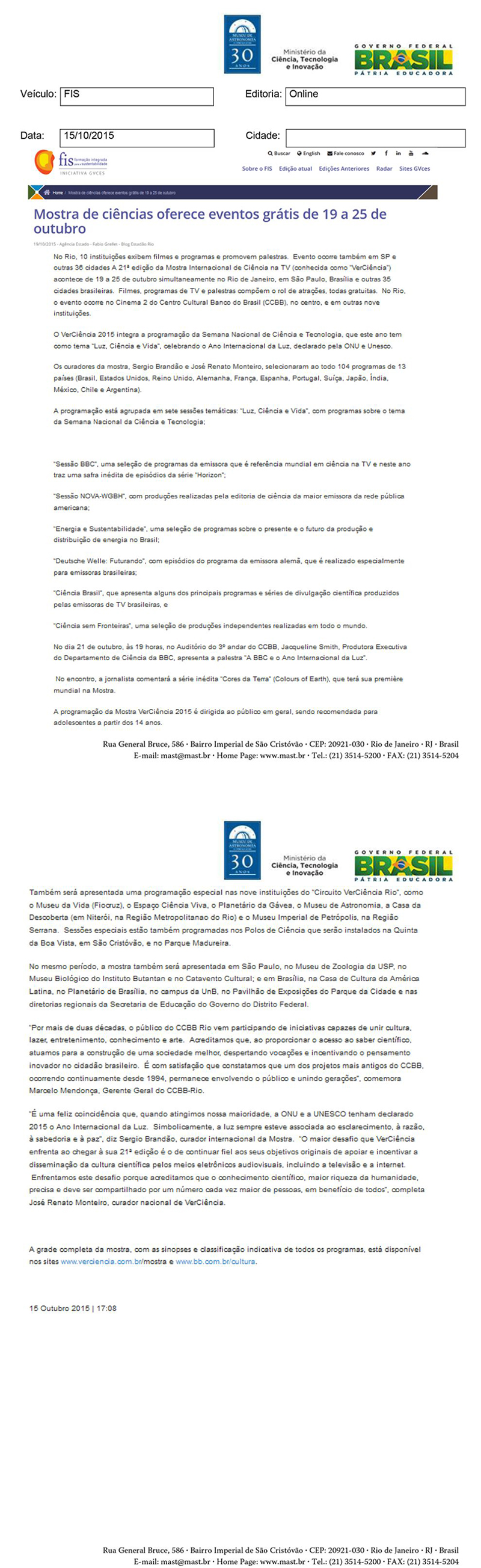 Museu de Astronomia e Ciências Afins - MAST
