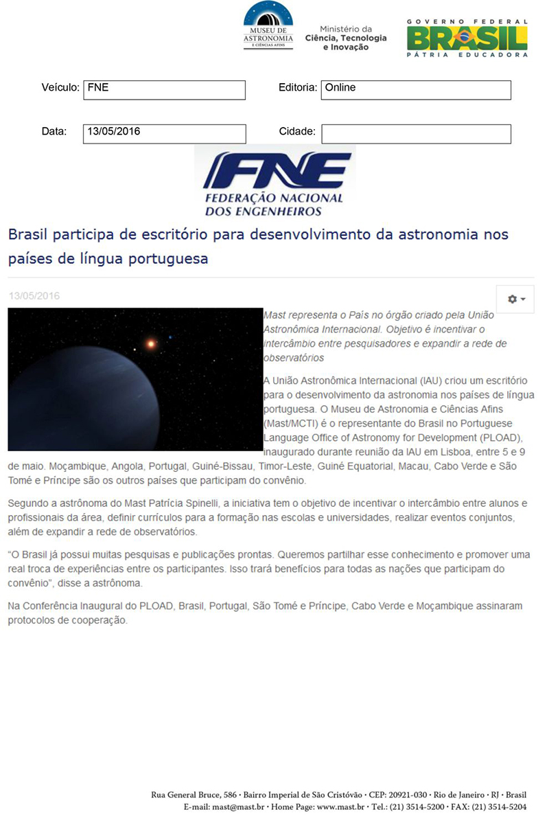 FNE | Brasil participa de escritório para desenvolvimento da astronomia nos países de língua portuguesa