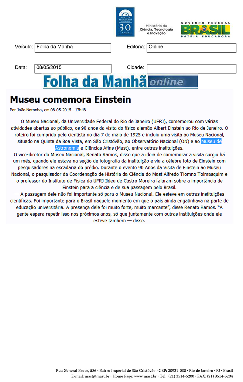 Folha da Manhã online | Museu comemora Einstein