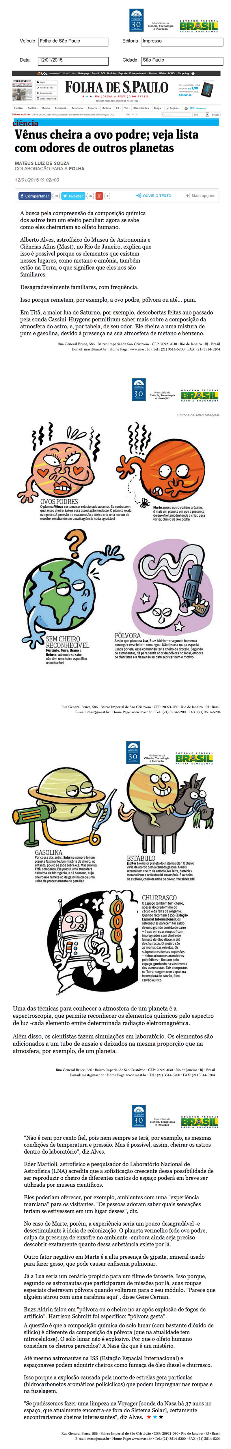 Folha de São Paulo | Vênus cheira a ovo podre; veja lista com odores de outros planetas