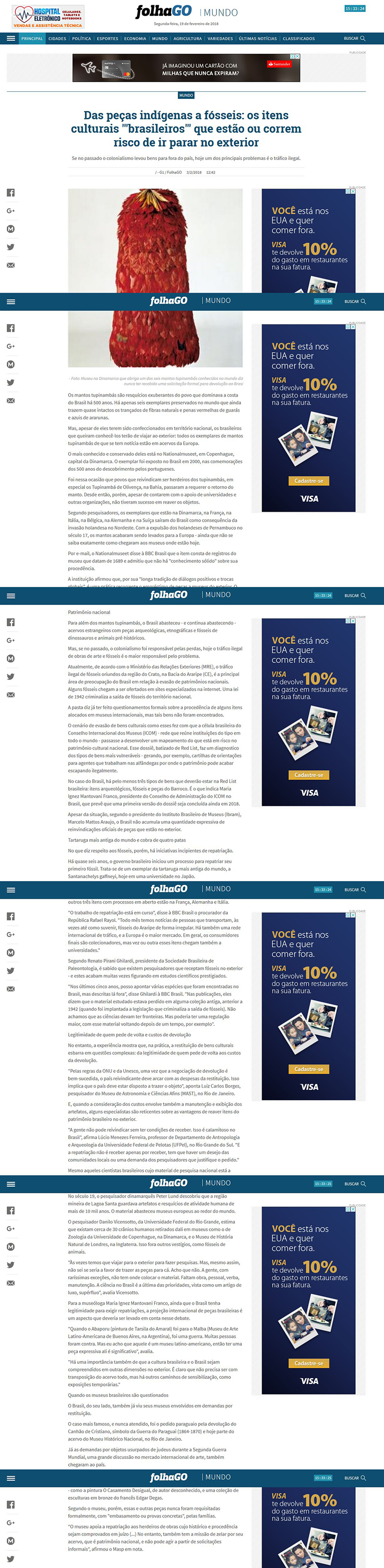Folha GO | Das peças indígenas a fósseis: os itens culturais 'brasileiros' que estão ou correm risco de ir para o exterior