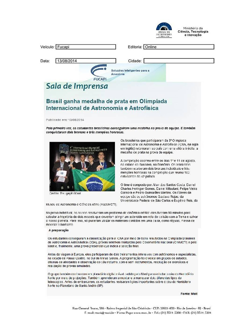 FUCAPI | Brasil conquista medalha de prata em olimpíada internacional de astronomia