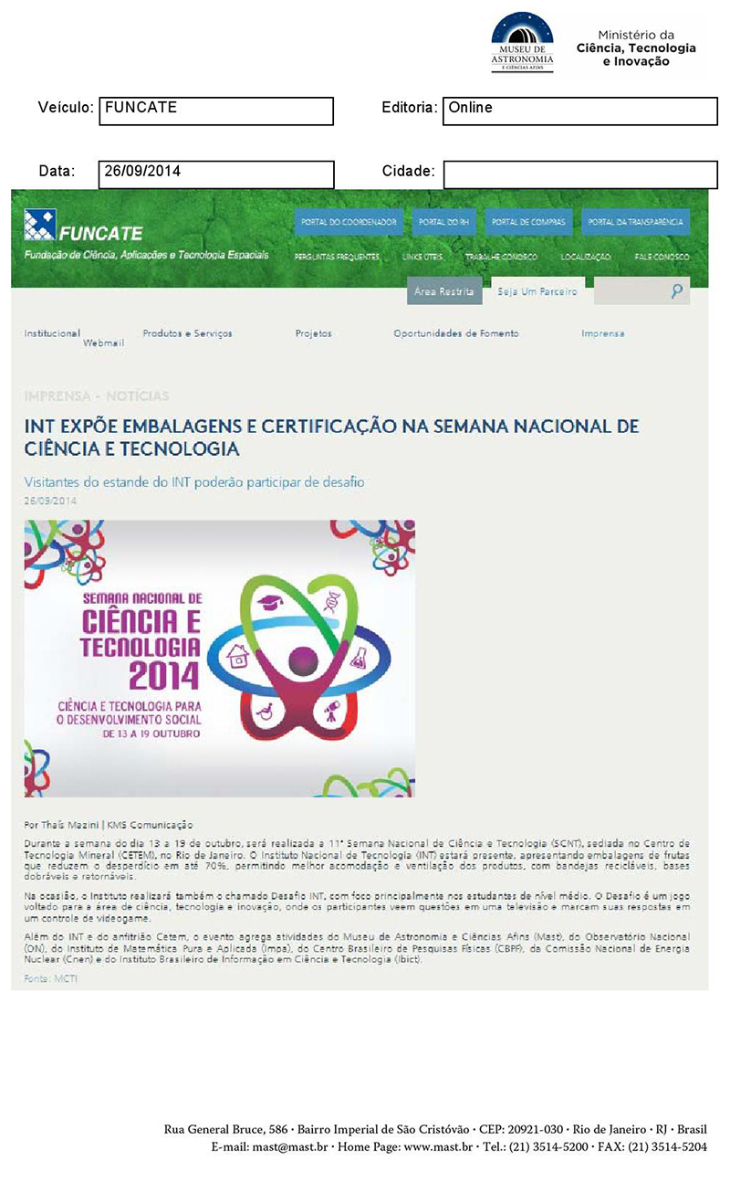 Funcate | INT expõe embalagens e certificação na Semana Nacional de Ciência e Tecnologia