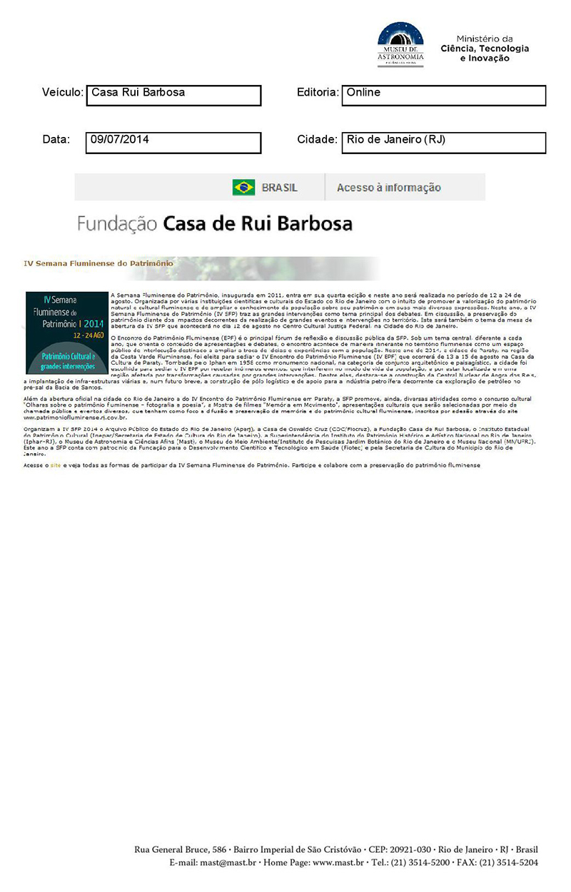 Fundação Casa de Rui Barbosa | IV Semana Fluminense do Patrimônio