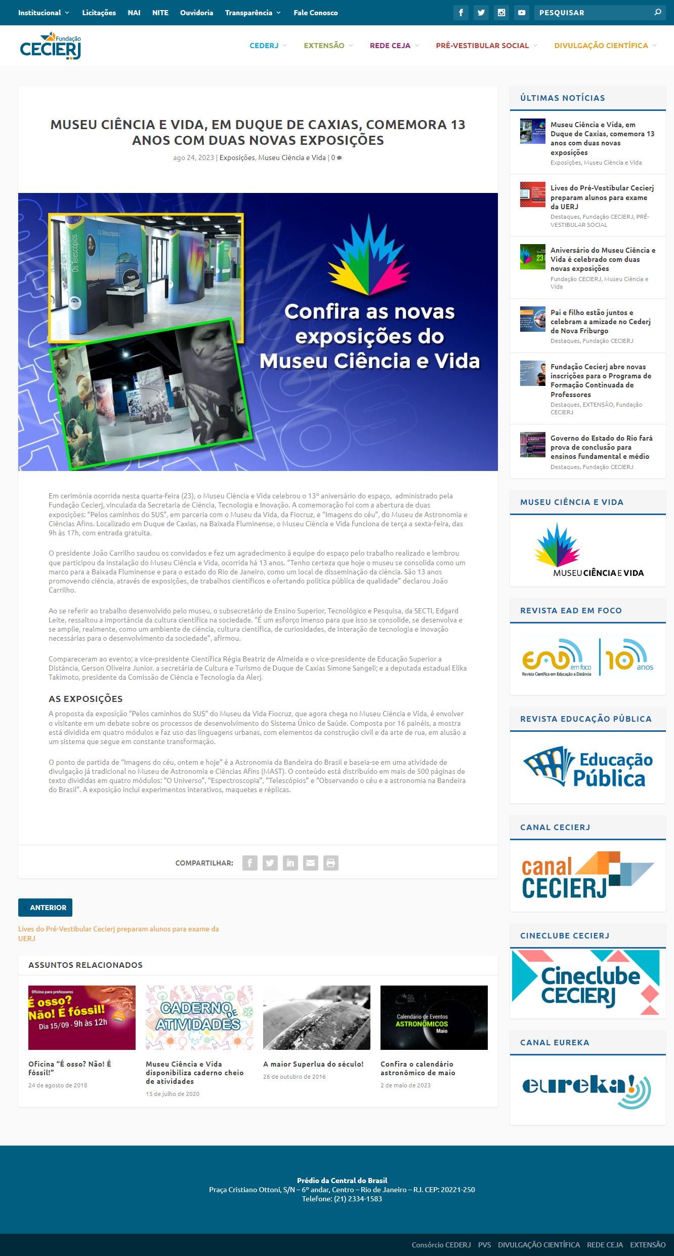 Fundação CECIERJ - Museu Ciência e Vida, em Duque de Caxias, comemora 13 anos com duas novas exposições