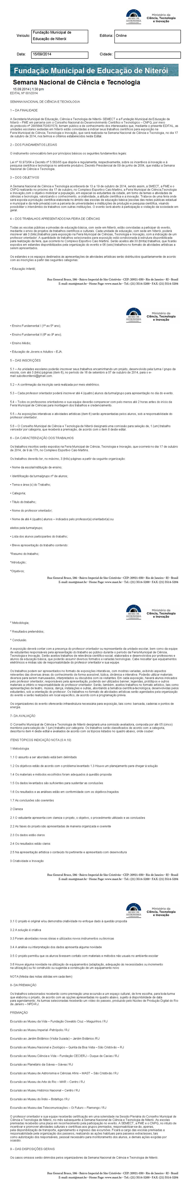 Fundação Municipal de Educação de Niterói | Semana Nacional de Ciência e Tecnologia