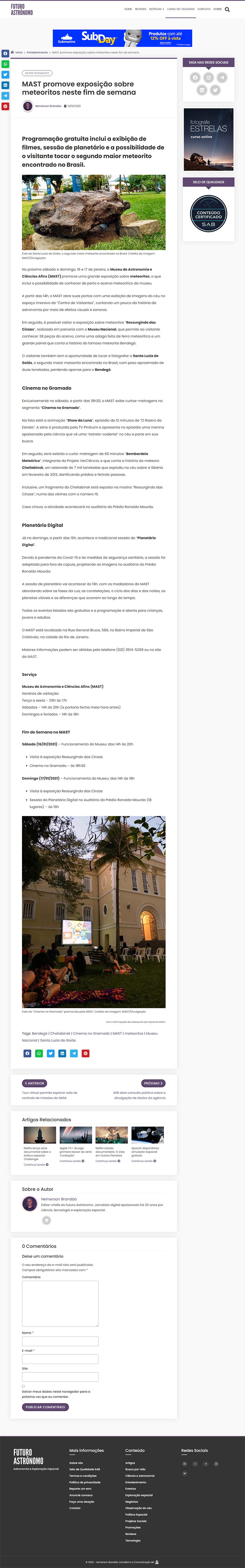 Futuro Astrônomo | Fim de Semana no MAST – Vem que tem meteoro
