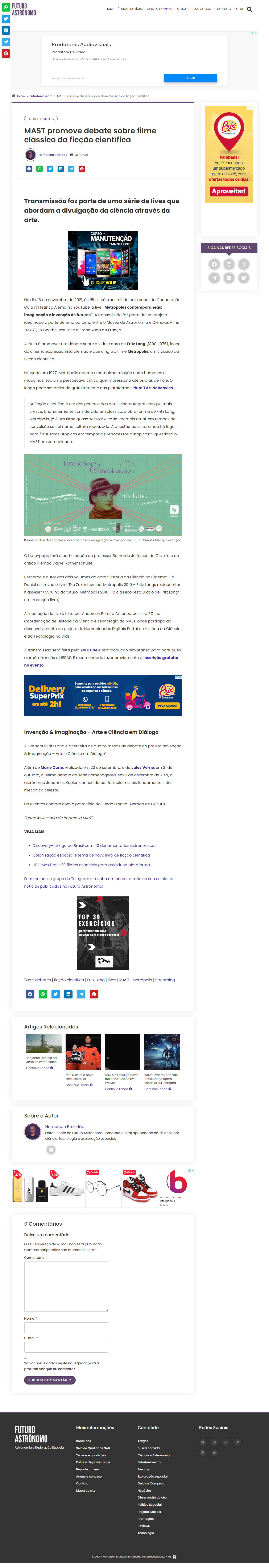 Futuro Astrônomo (site) - MAST, Goethe-Institut e Embaixada da França realizam o projeto 'Invenção & Imaginação'