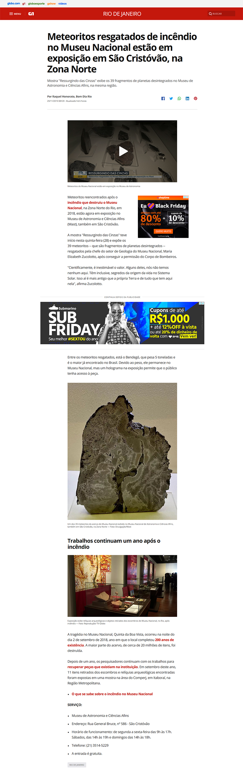 G1 - Bom Dia Rio | Meteoritos resgatados de incêndio no Museu Nacional estão em São Cristóvão, na Zona Norte